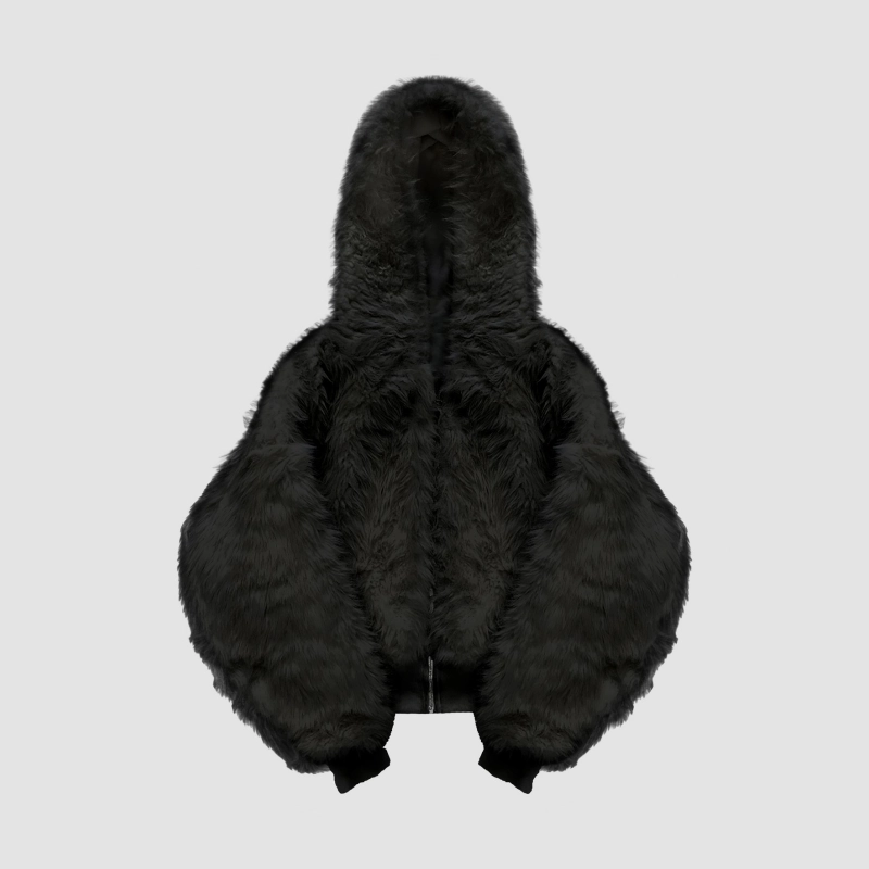YETI FUR REVERSIBEL ZIP HOODIE JACKET