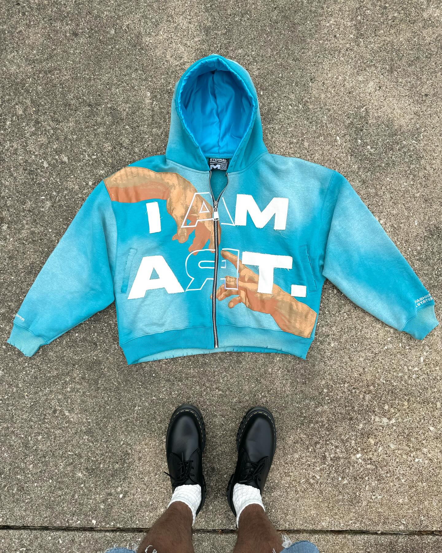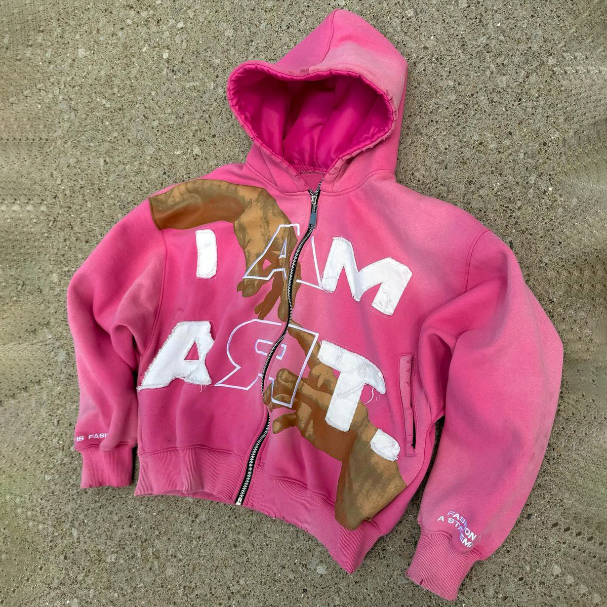 I Am Art Print Long Sleeve Zipper Applique Embroidered Hoodies