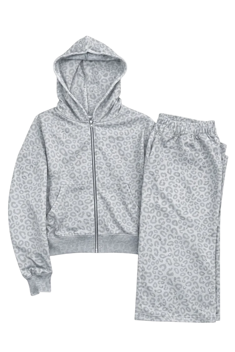 OMEN RHINESTONE ZIP HOODIE SMOKE GREY