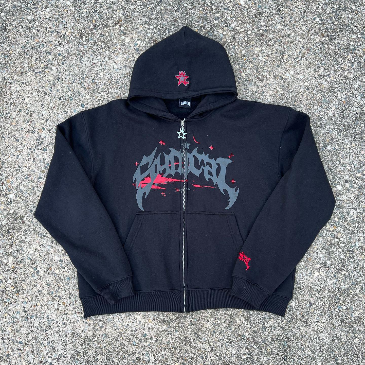 retro no owners print zip up hoodie