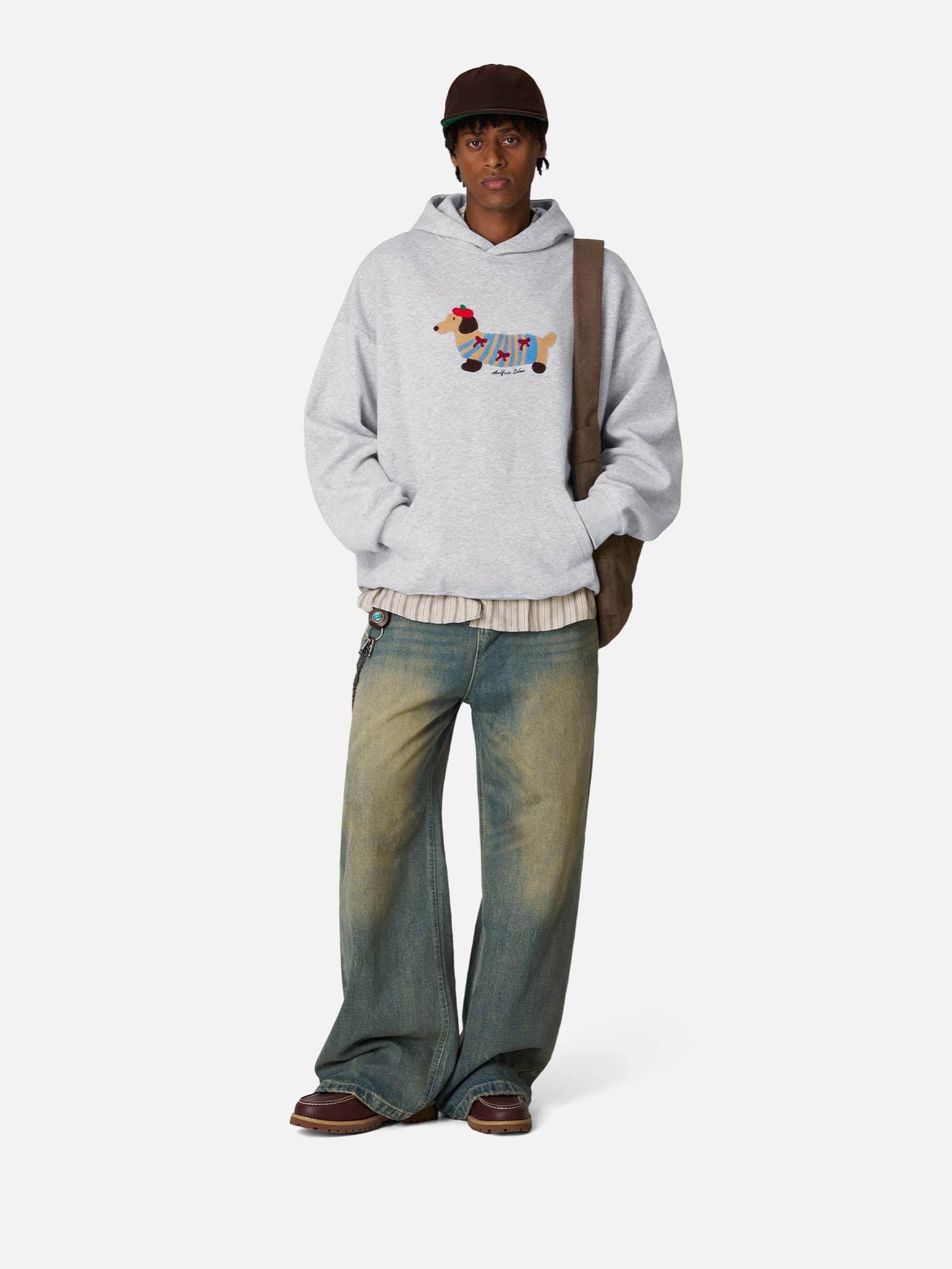 This hoodie features an adorable embroidered dog motif on the front — crafted in textured terry stitching for a vivid, 3D look. The soft cotton-blend fabric and relaxed silhouette make it your new everyday essential for both comfort and personality.