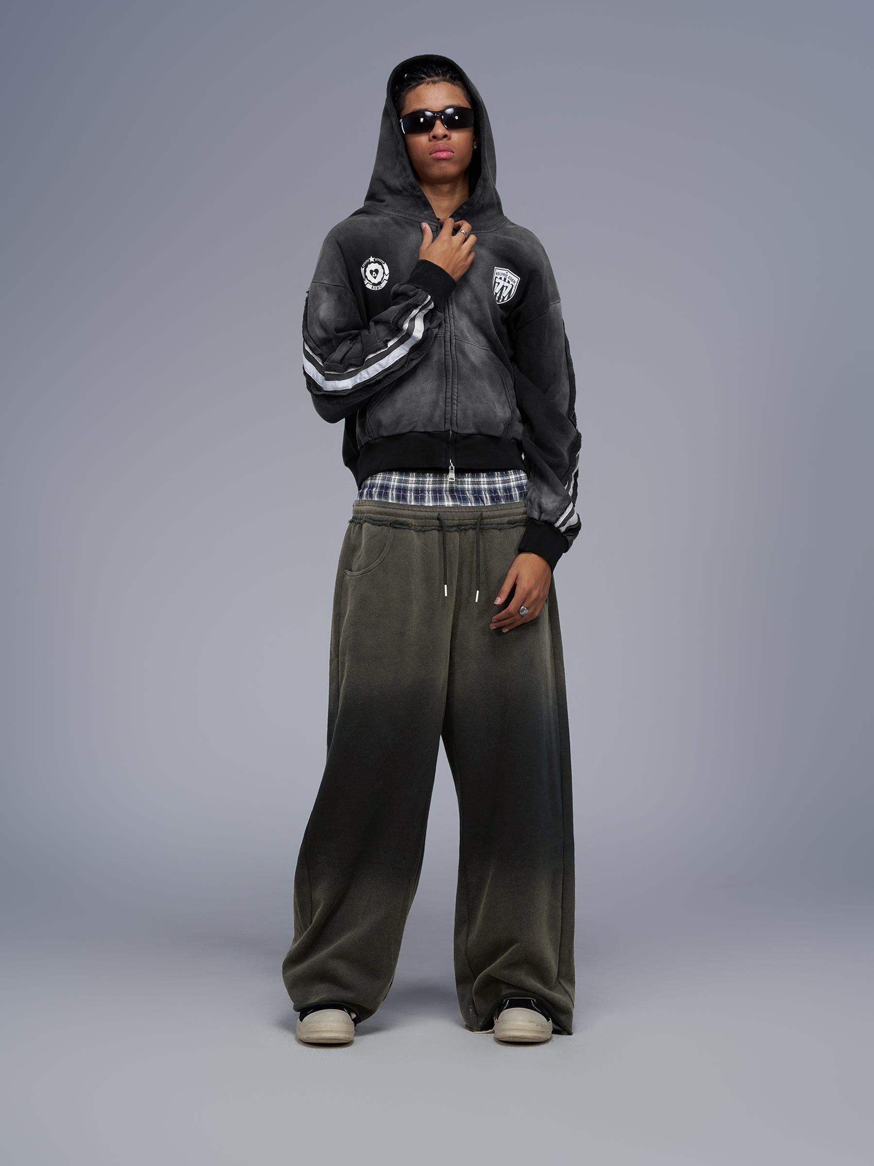 Boxy fit 77 Stripe Zip Hoodie – Acid Wash