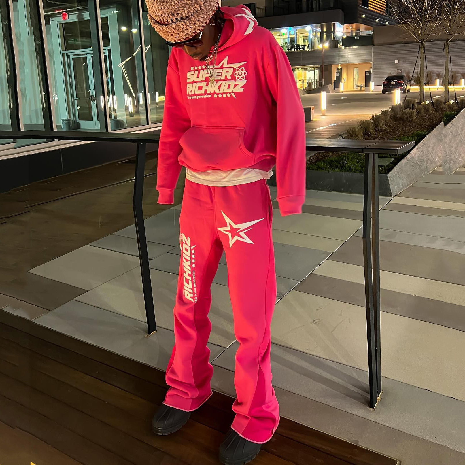 Alphabet & Pentagram Print Hoodie Sweatpants Two Piece Set
