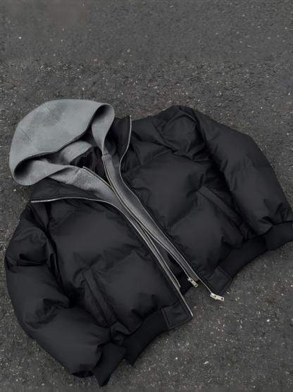 American-Style Matte PU Leather Puffer Jacket – Winter Warm