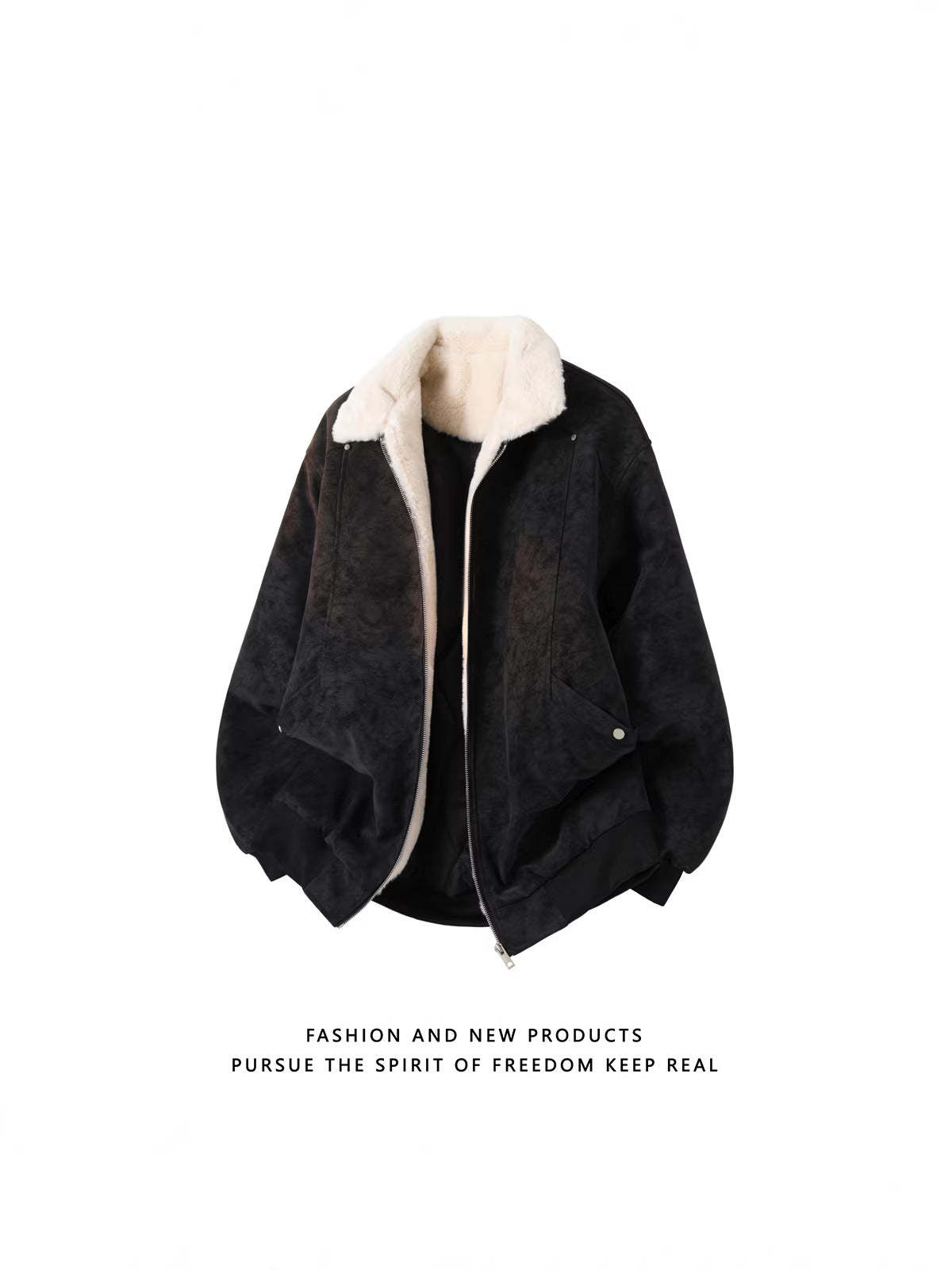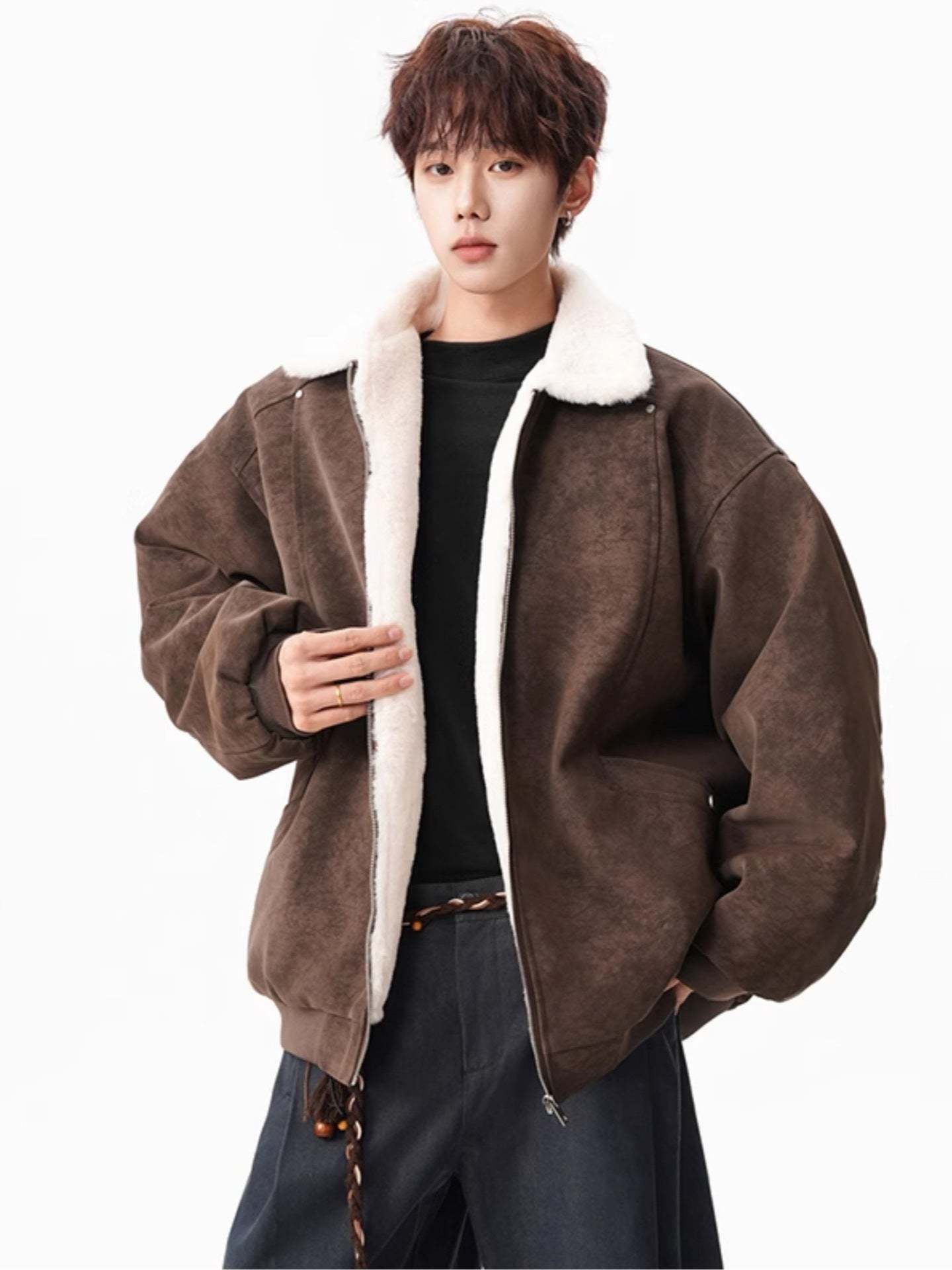 American-Style PU Leather Jacket with Sherpa Lining[DROP3-018]