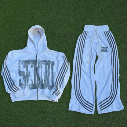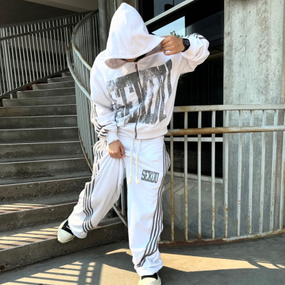 Casual Street Zip Hoodie Pants Two-Piece Set