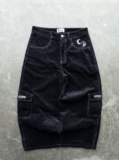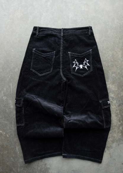 CORDUROY. Black Baggy Cargo Pants