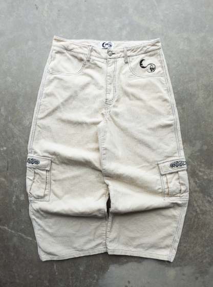 CORDUROY. Cream Baggy Cargo Pants