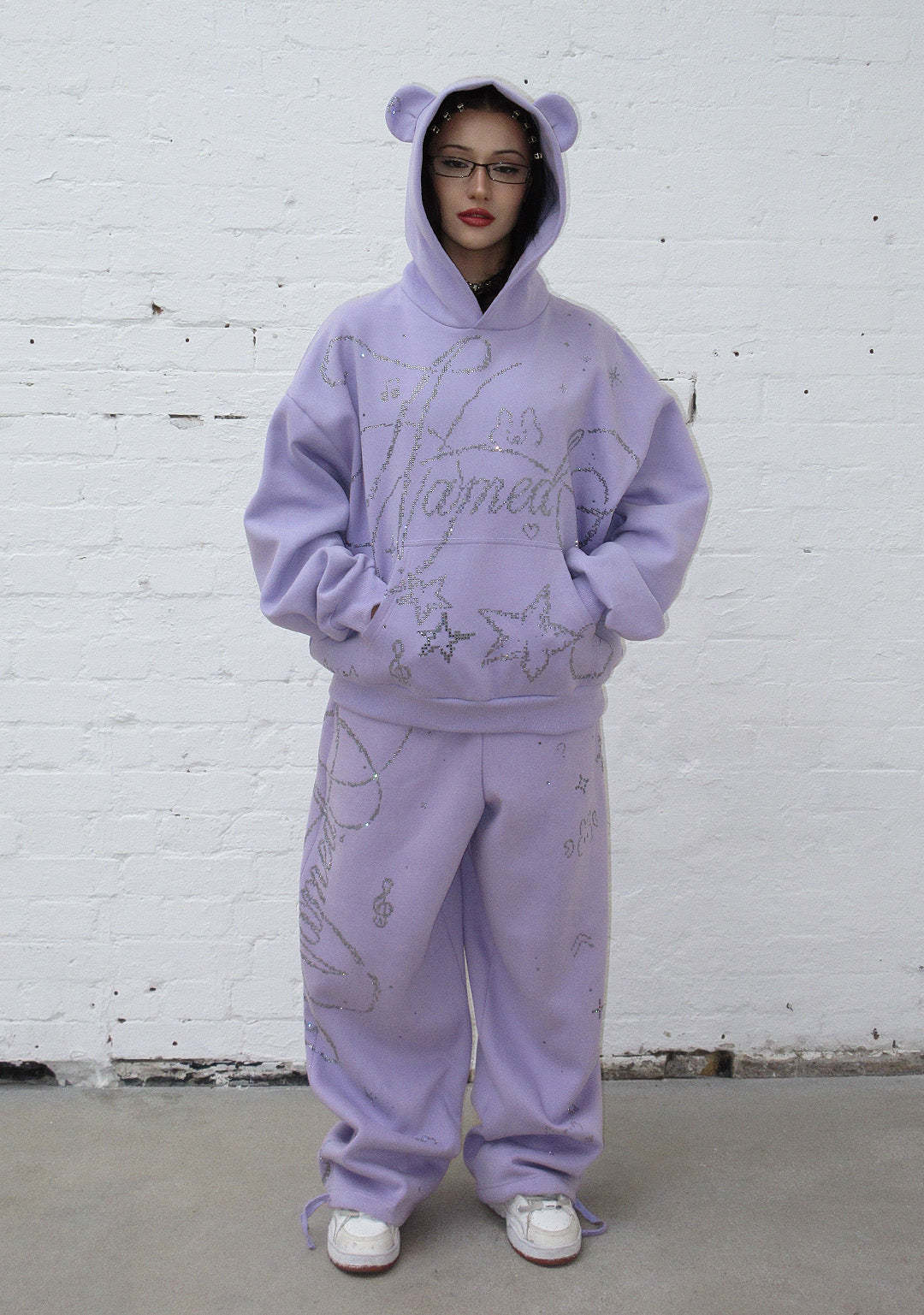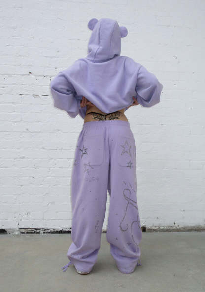 DREAMER RHINESTONE TEDDY OVERSIZED SWEATPANTS LILAC