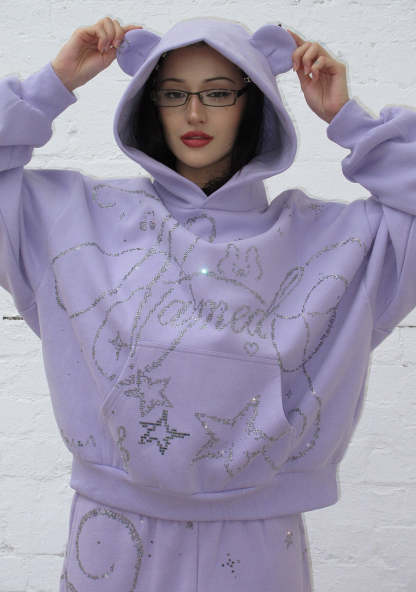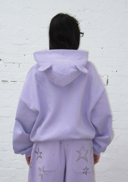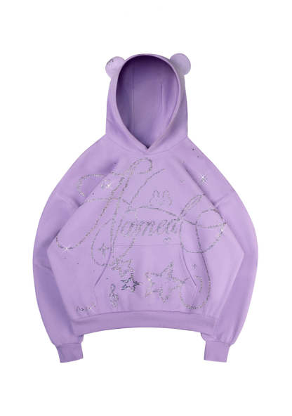 DREAMER RHINESTONE TEDDY PULLOVER HOODIE LILAC