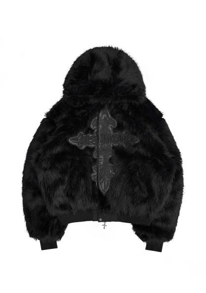 FERAL FAUX FUR REVERSIBLE BOMBER JACKET BLACK