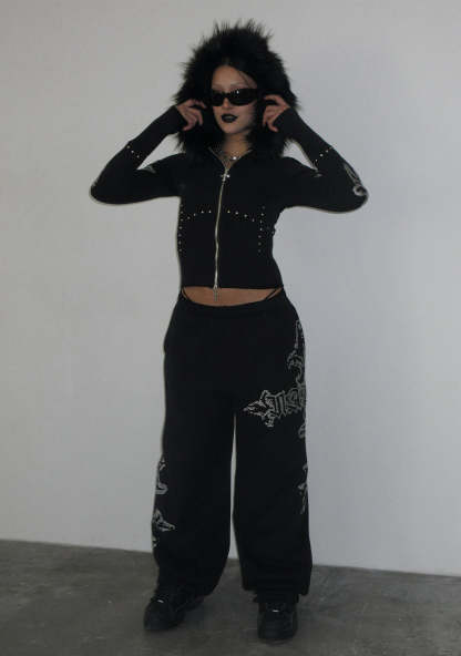 FERAL STUDDED OVERSIZED SWEATPANTS BLACK