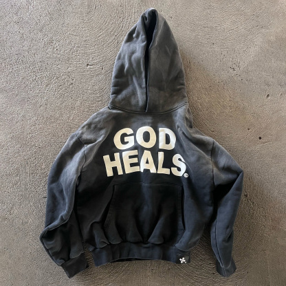 God Heals Print Long Sleeve Hoodies