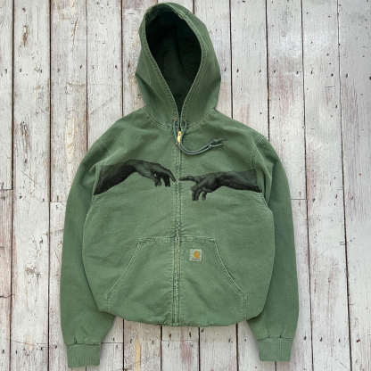 Hands Printed Long Sleeve Zipper Design Jacket