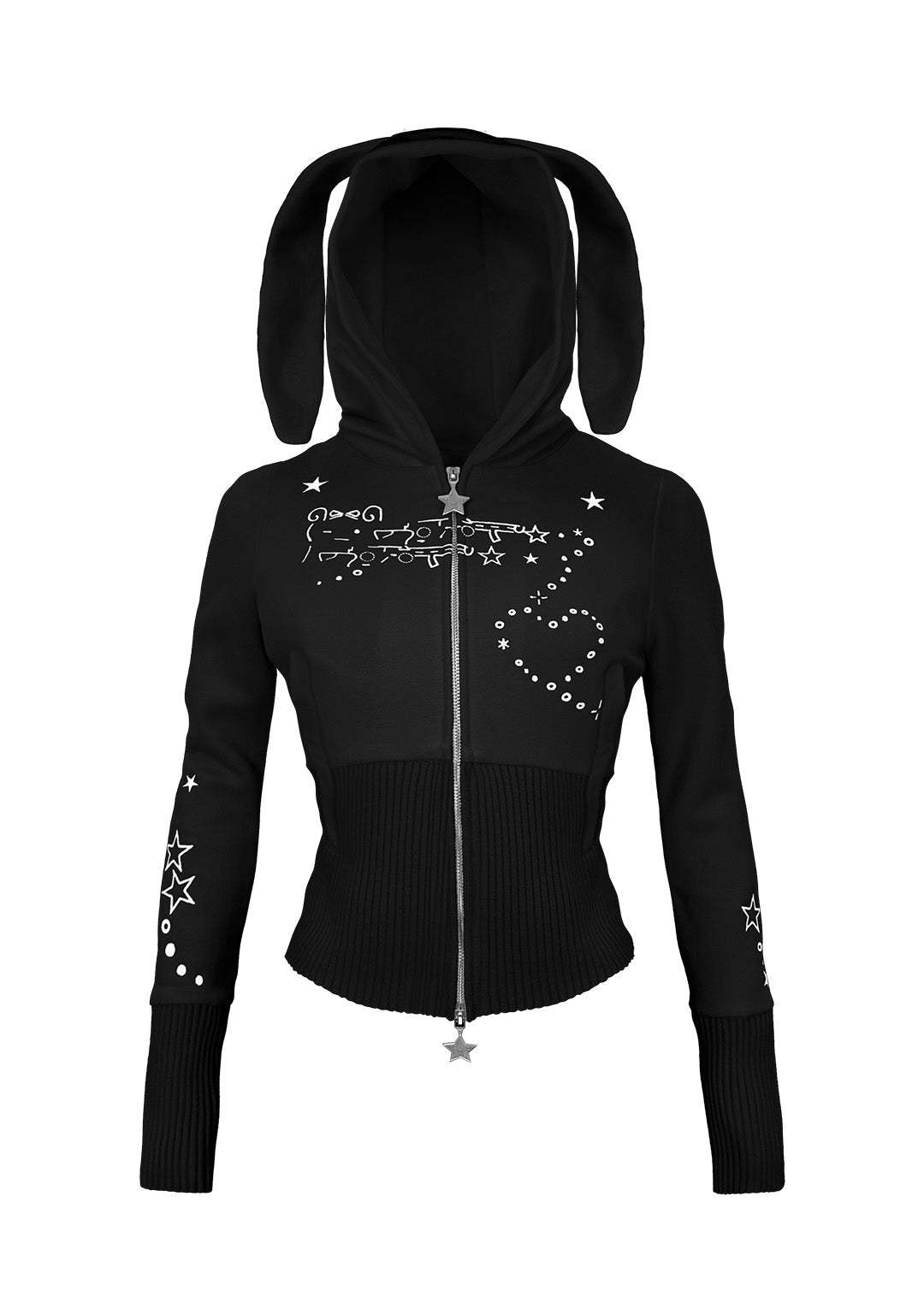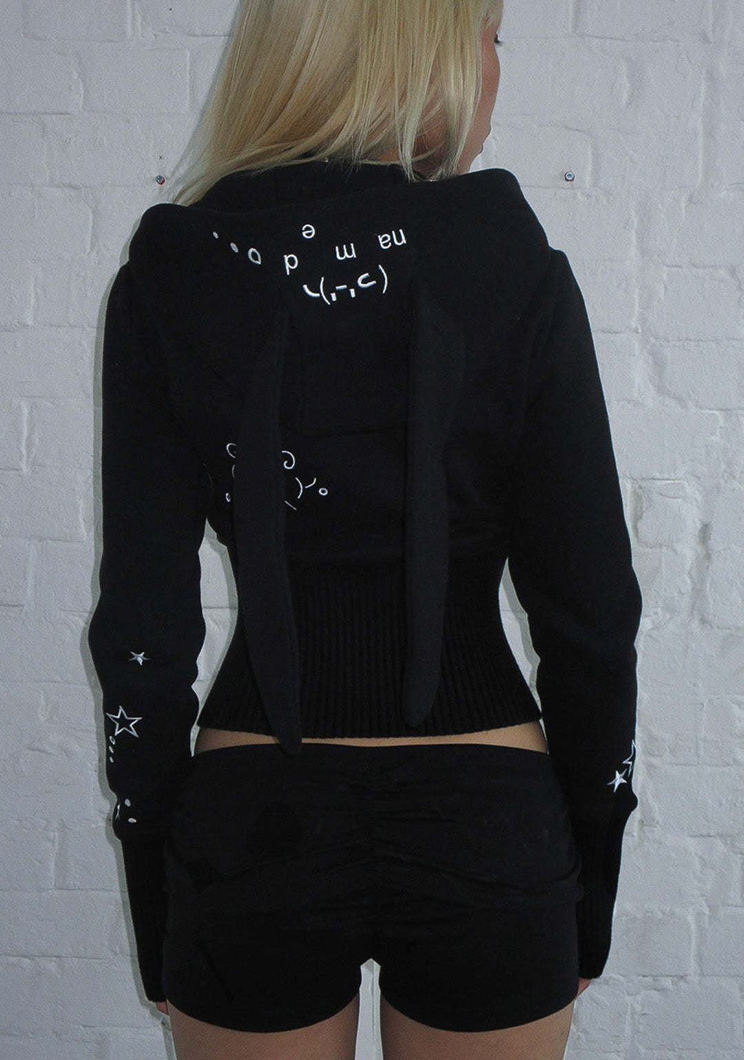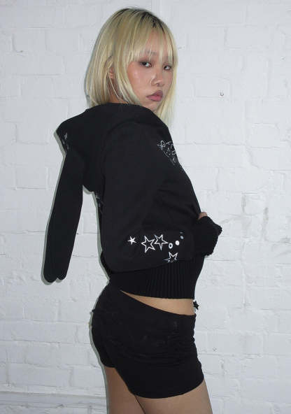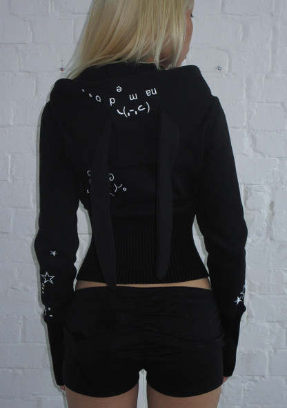 MALFUNCTION BUNNY FITTED HOODIE BLACK (DETACHABLE EARS)