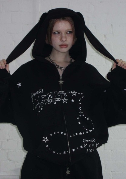 MALFUNCTION BUNNY ZIP HOODIE BLACK (DETACHABLE EARS)