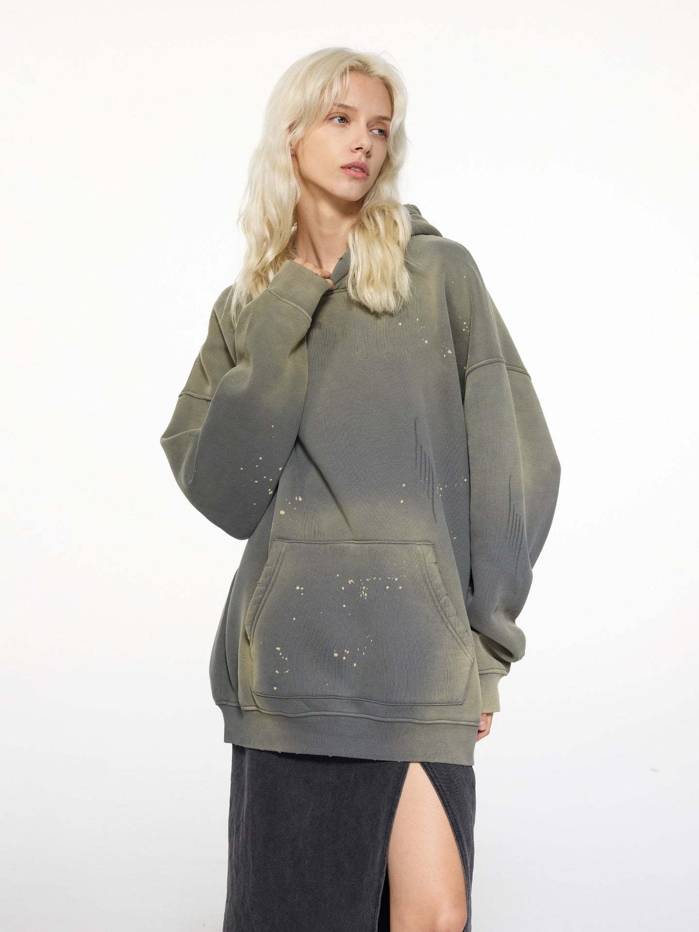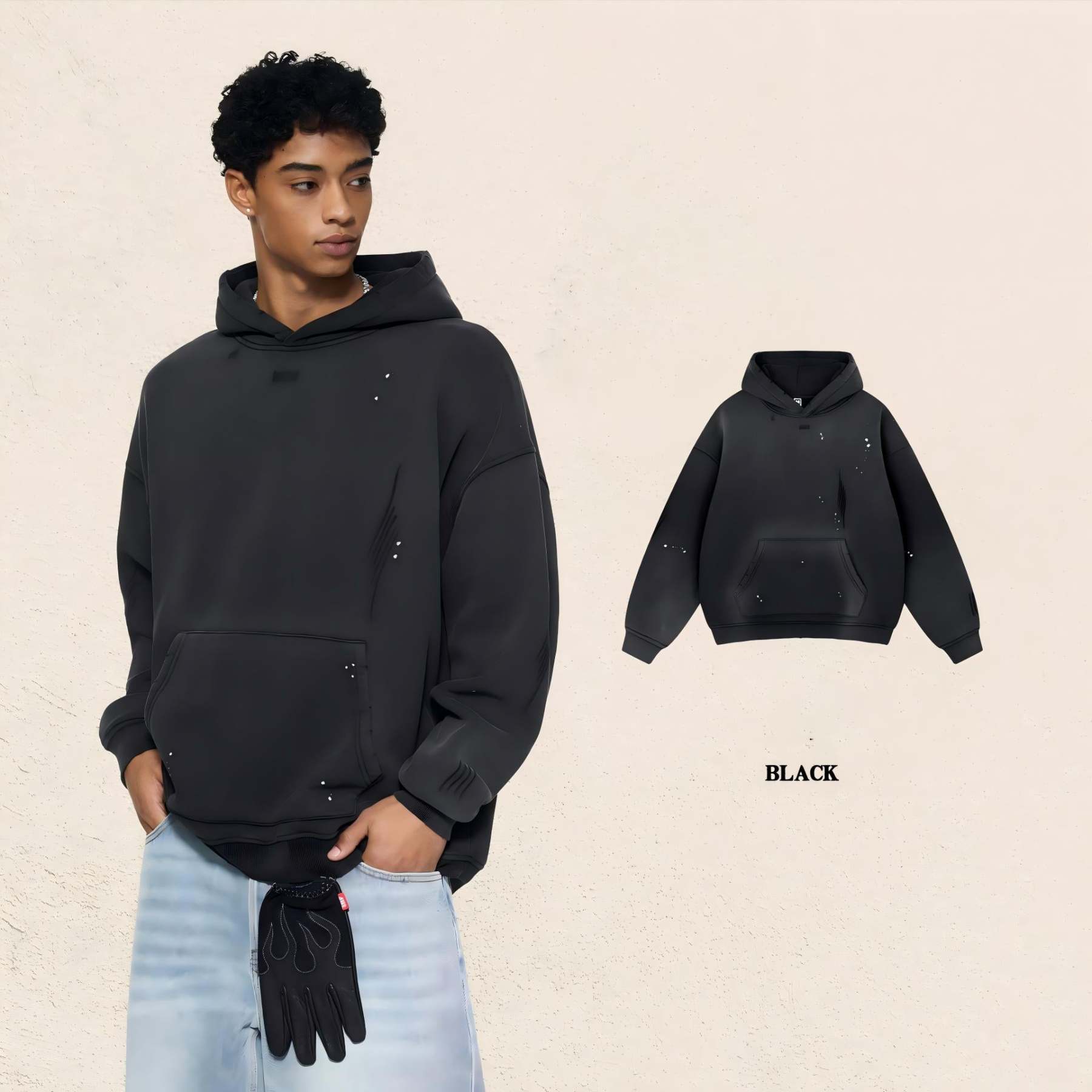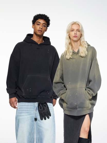 Men’s 360g Fleece-Lined Hoodie – American Streetwear Paint Splatter Monkey Print[DROP2-004]