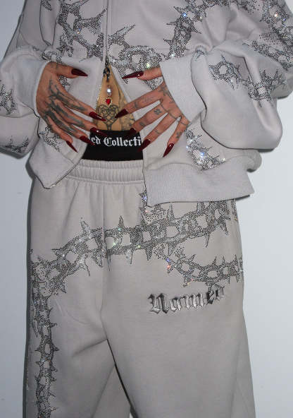OMEN RHINESTONE OVERSIZED SWEATPANTS SMOKE GREY