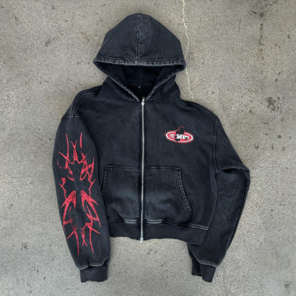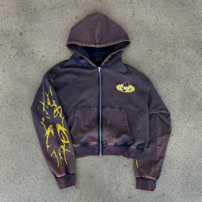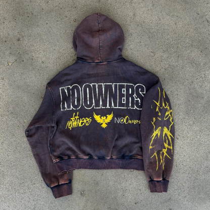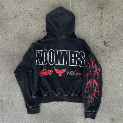 retro no owners print zip up hoodie