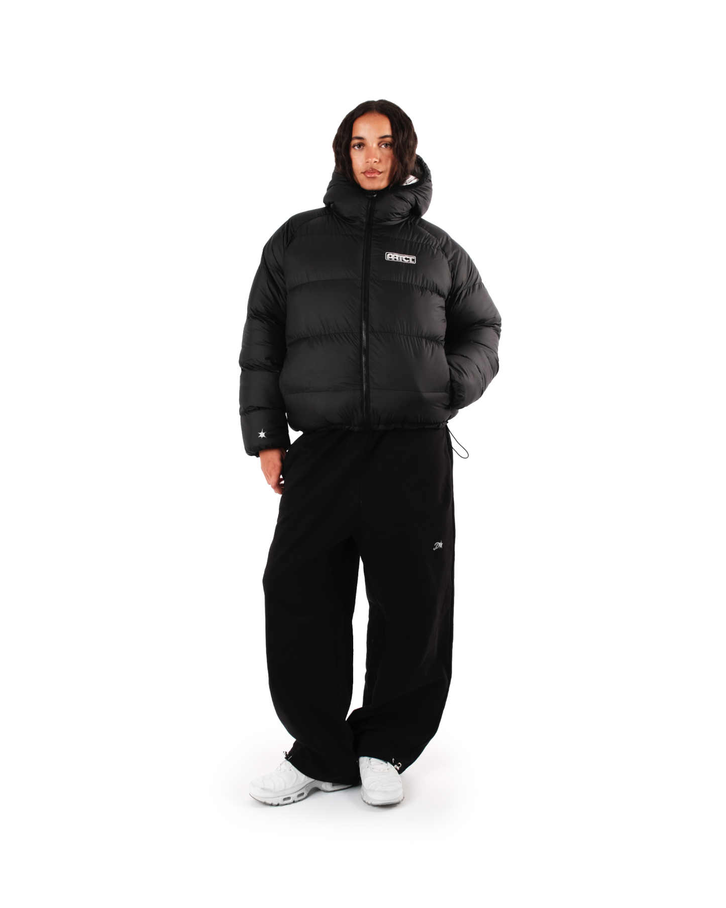 - Elastic waistband and cuffs for a tailored fit.