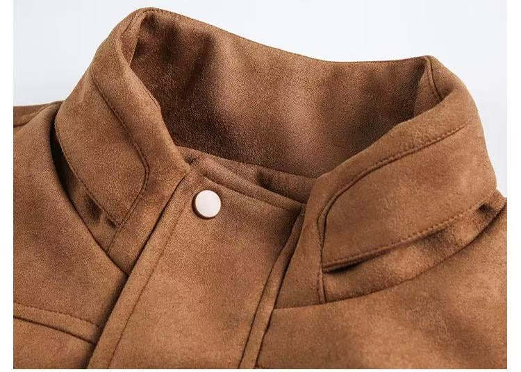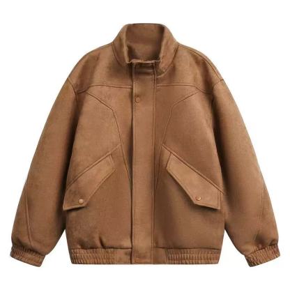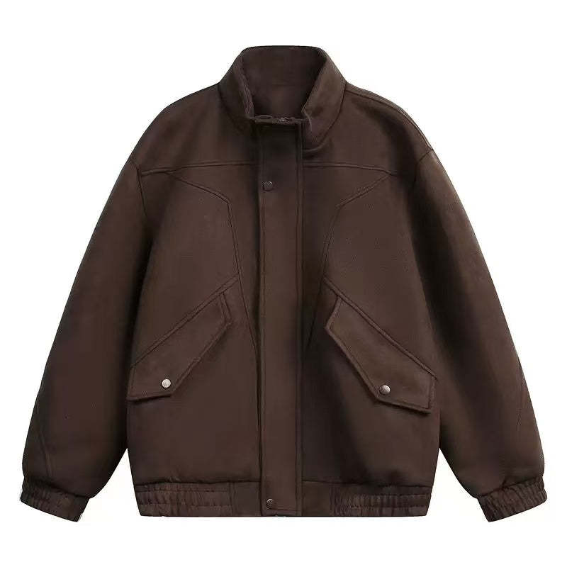Spring '26 Stand Collar Suede Utility Jacket - Men's Loose Fit [DROP2-016]