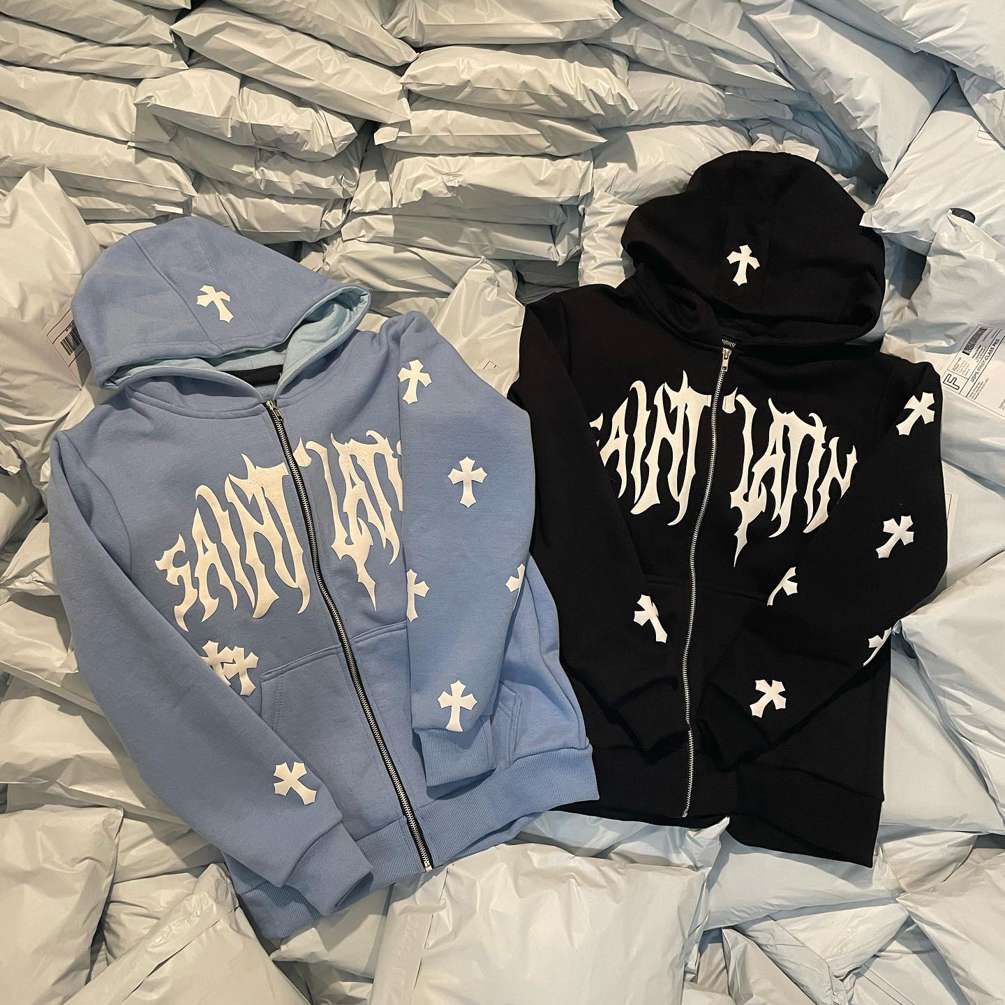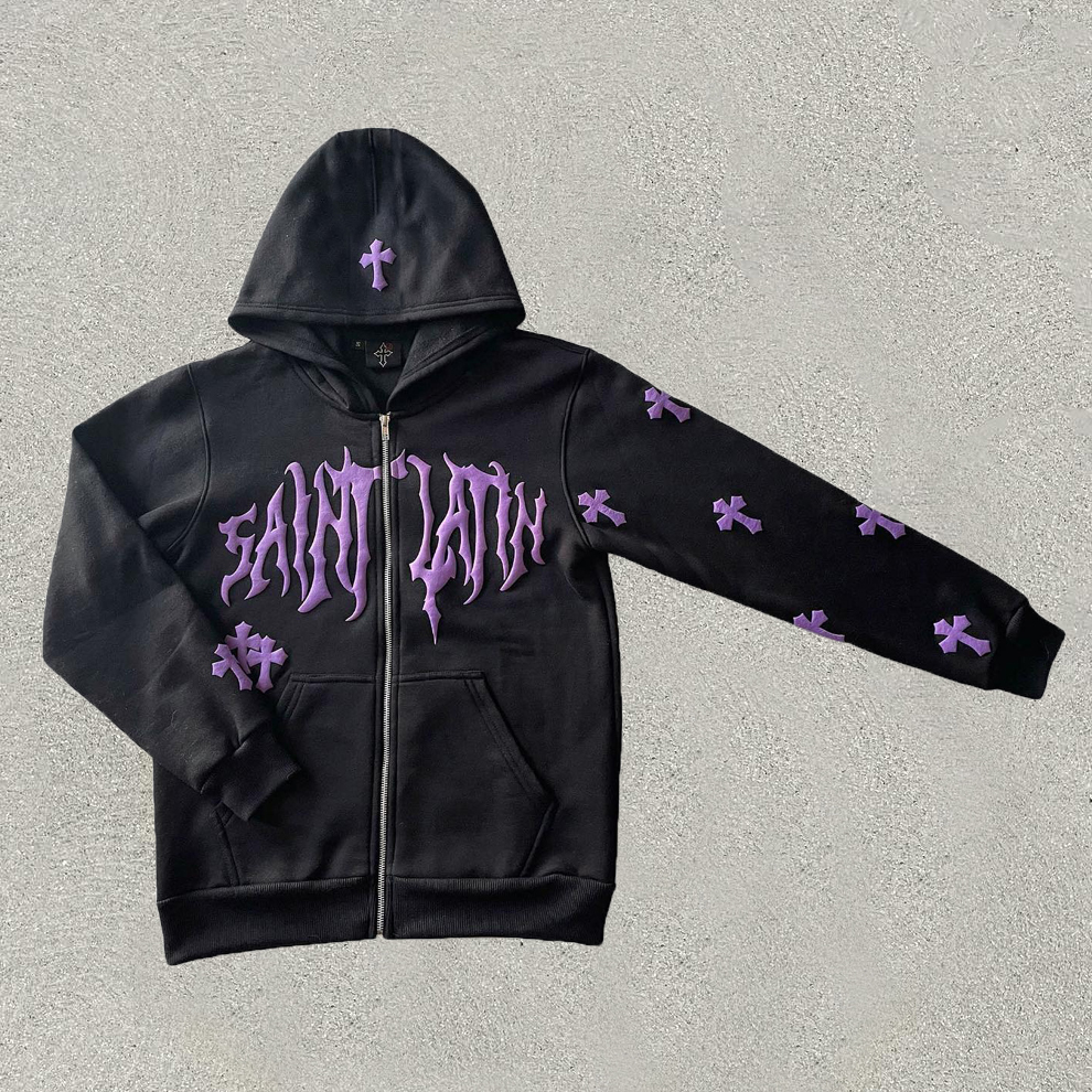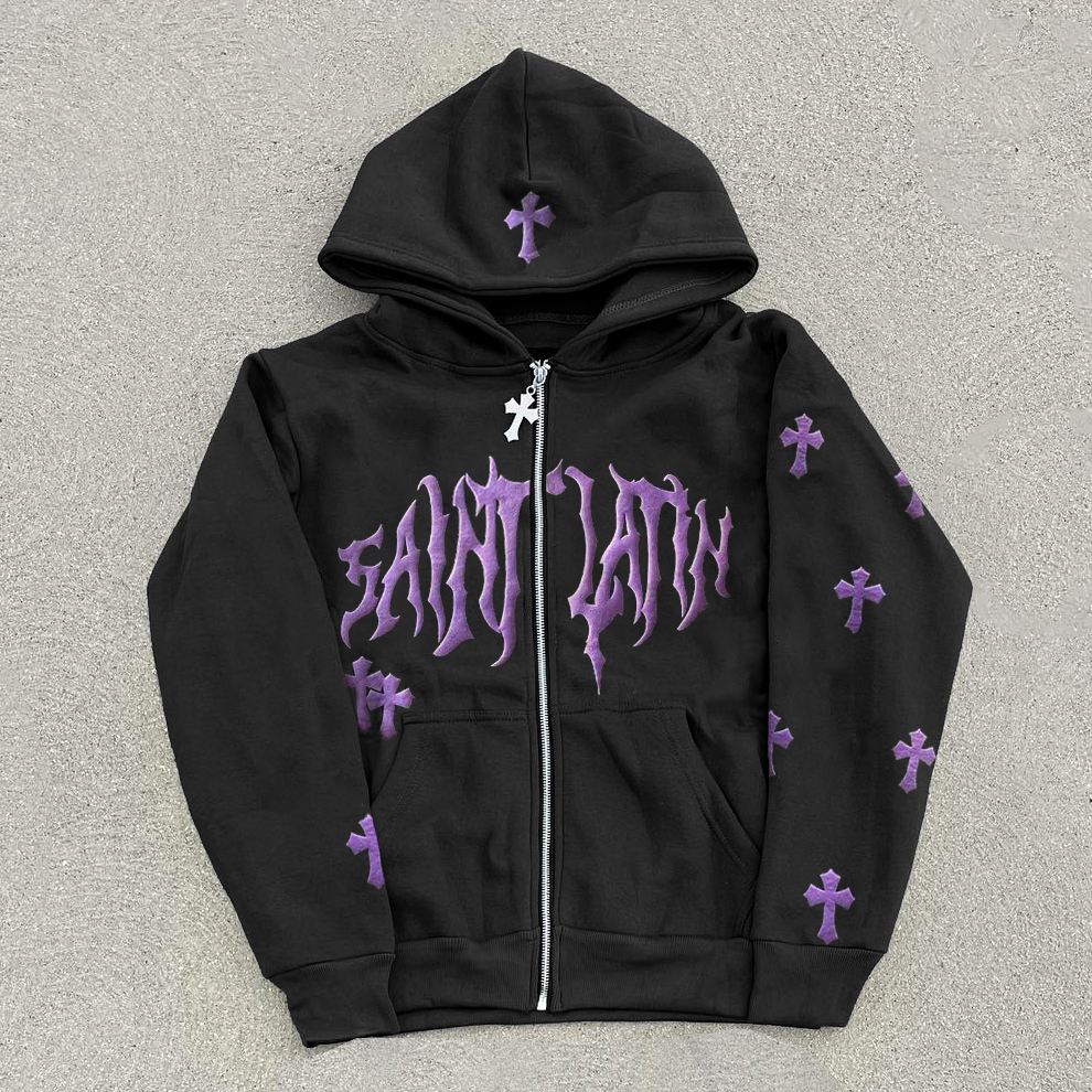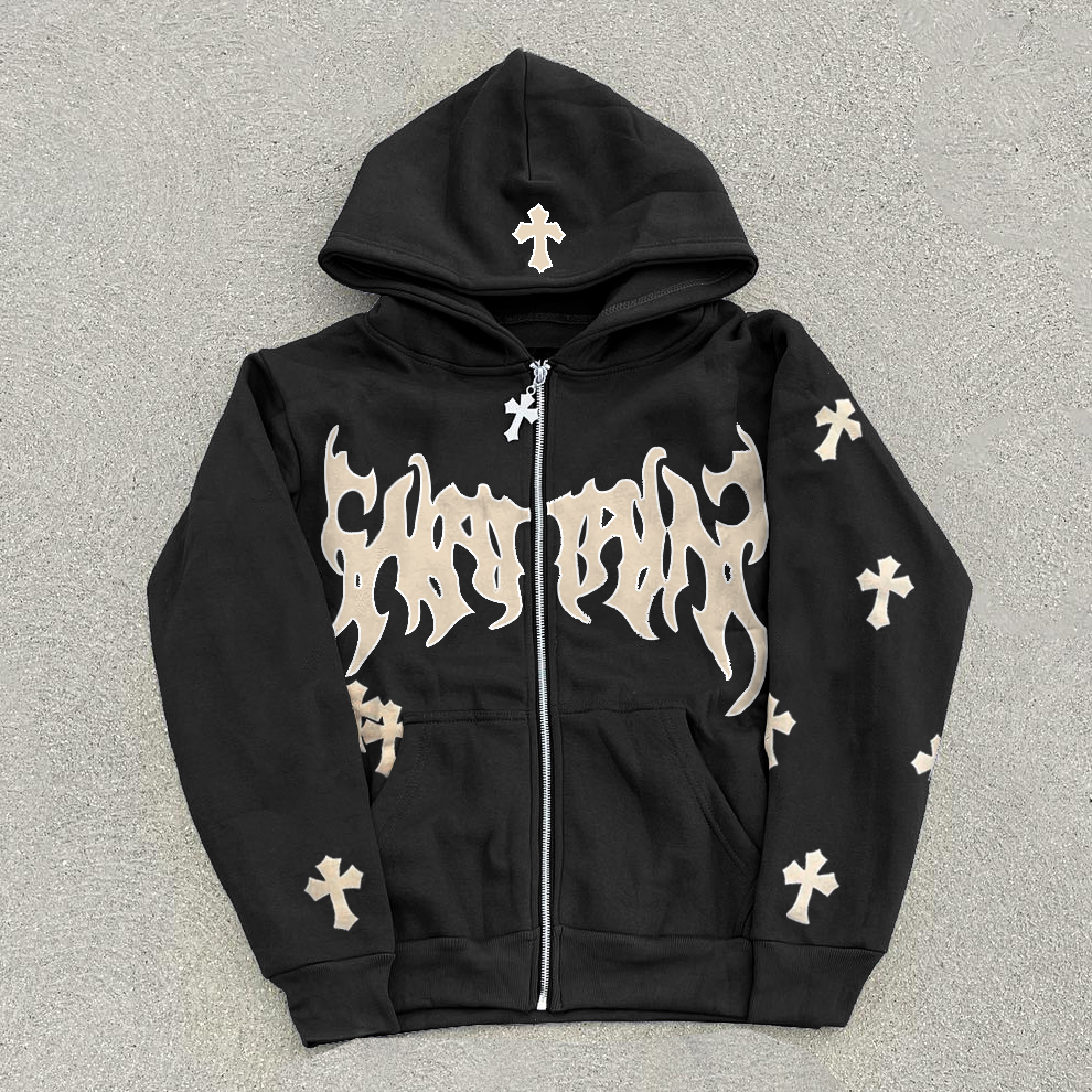 statement cross print hoodie