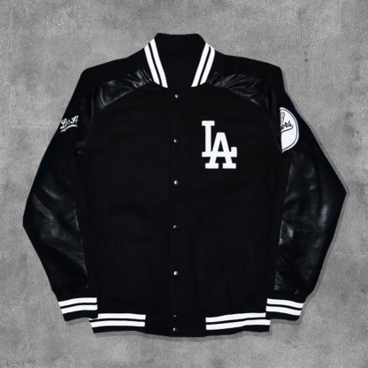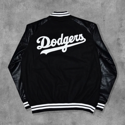 Street Style Print Leather Patchwork Baseball Jacket