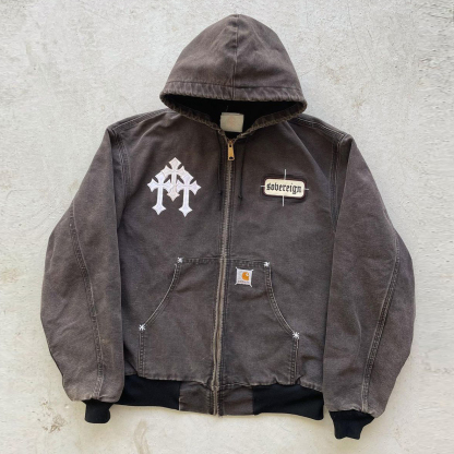 Vintage cross badge metal ornament thick jacket