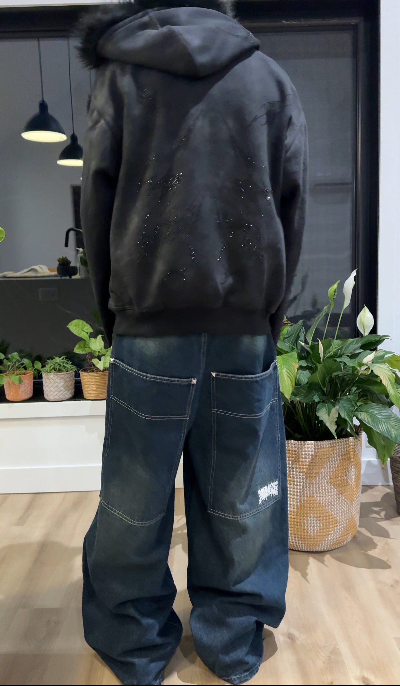 WASHED NAVY STUDDED SIMPLE Baggy Jeans