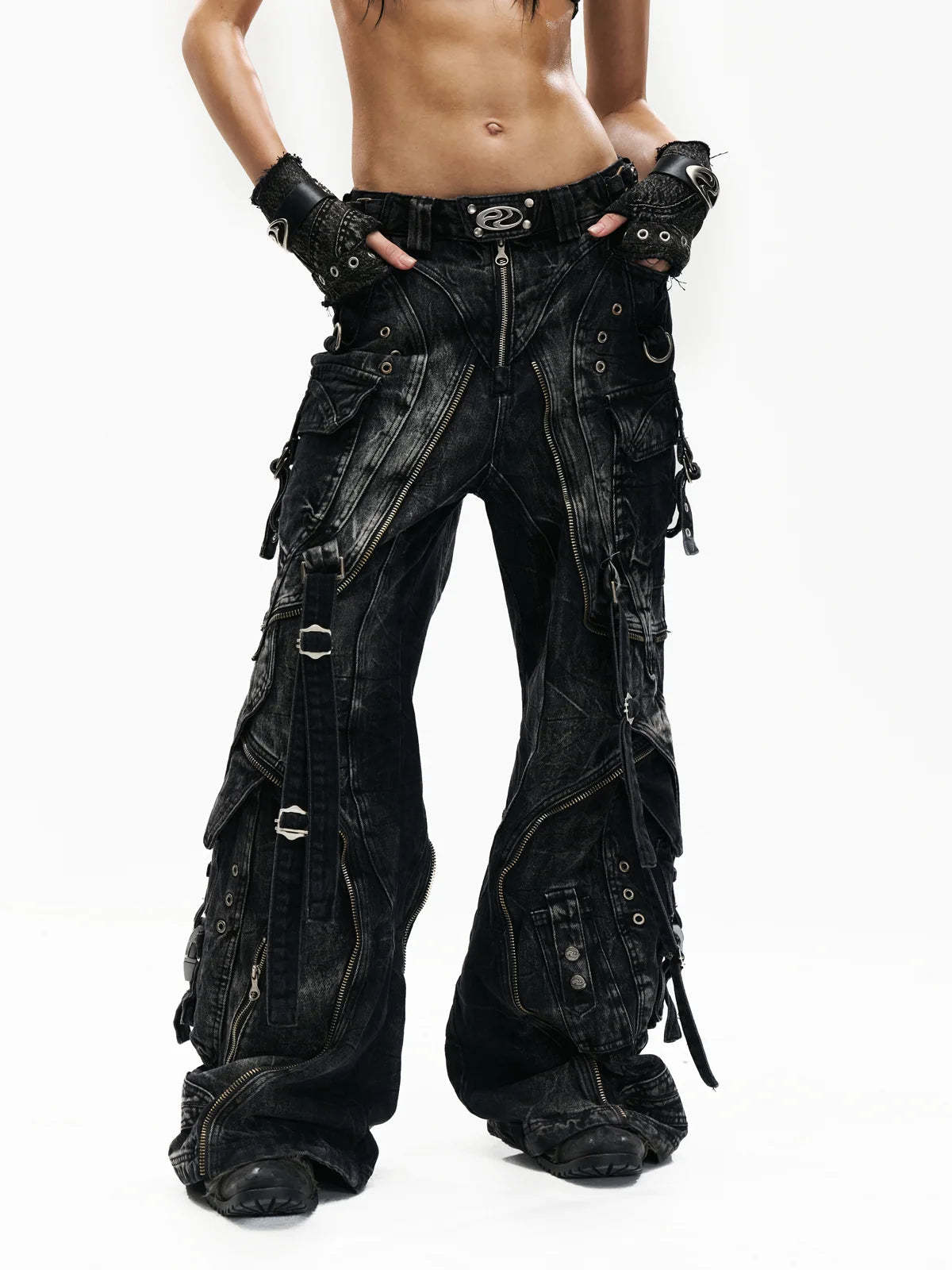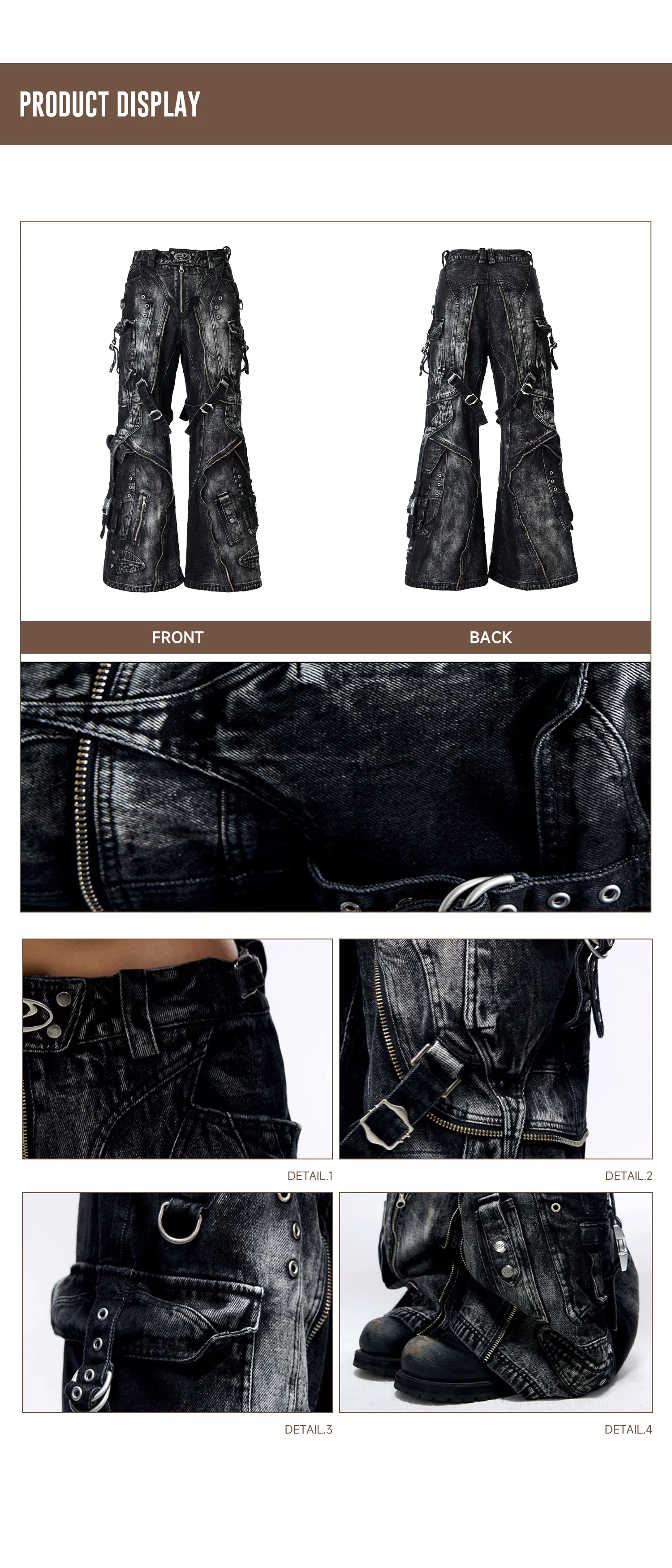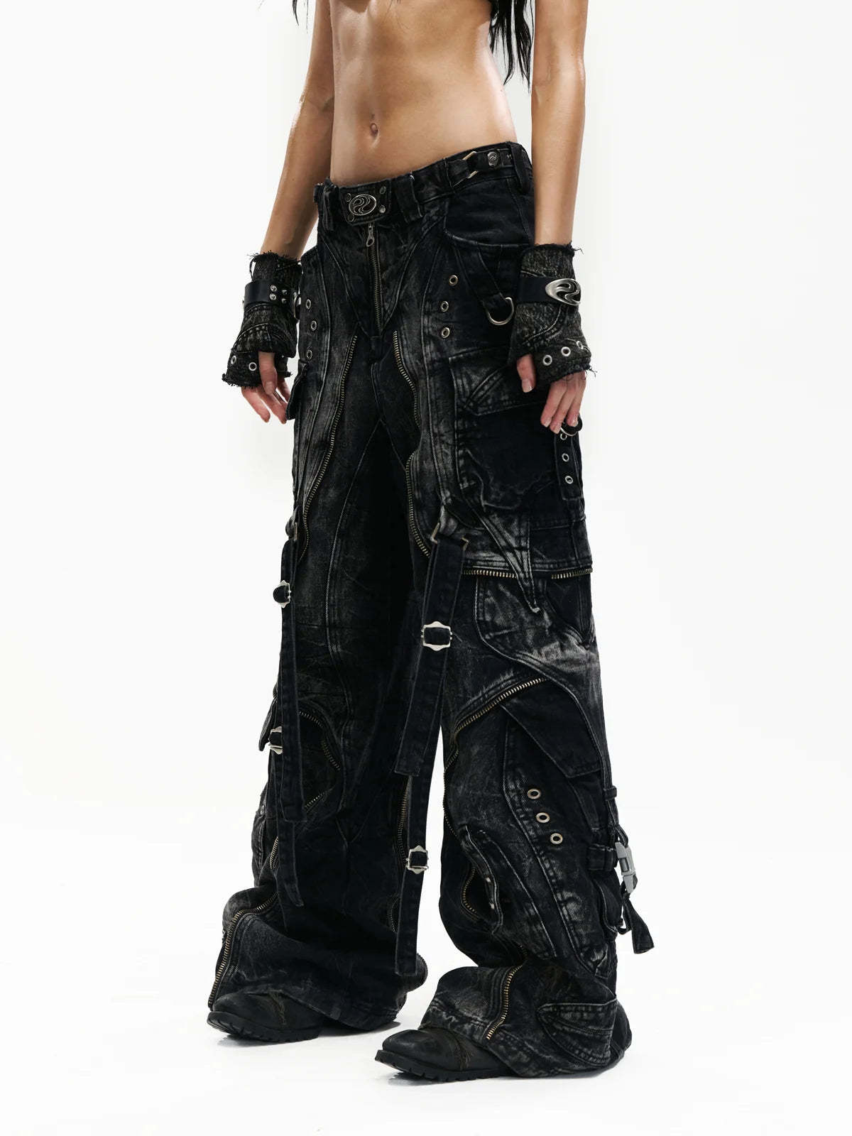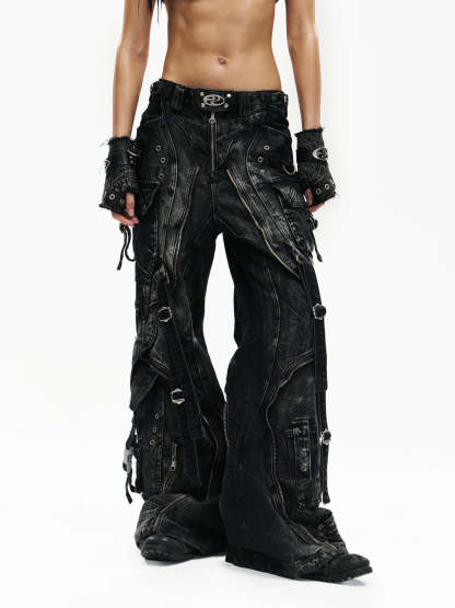 A-Line Baggy Jeans with Hardware Details