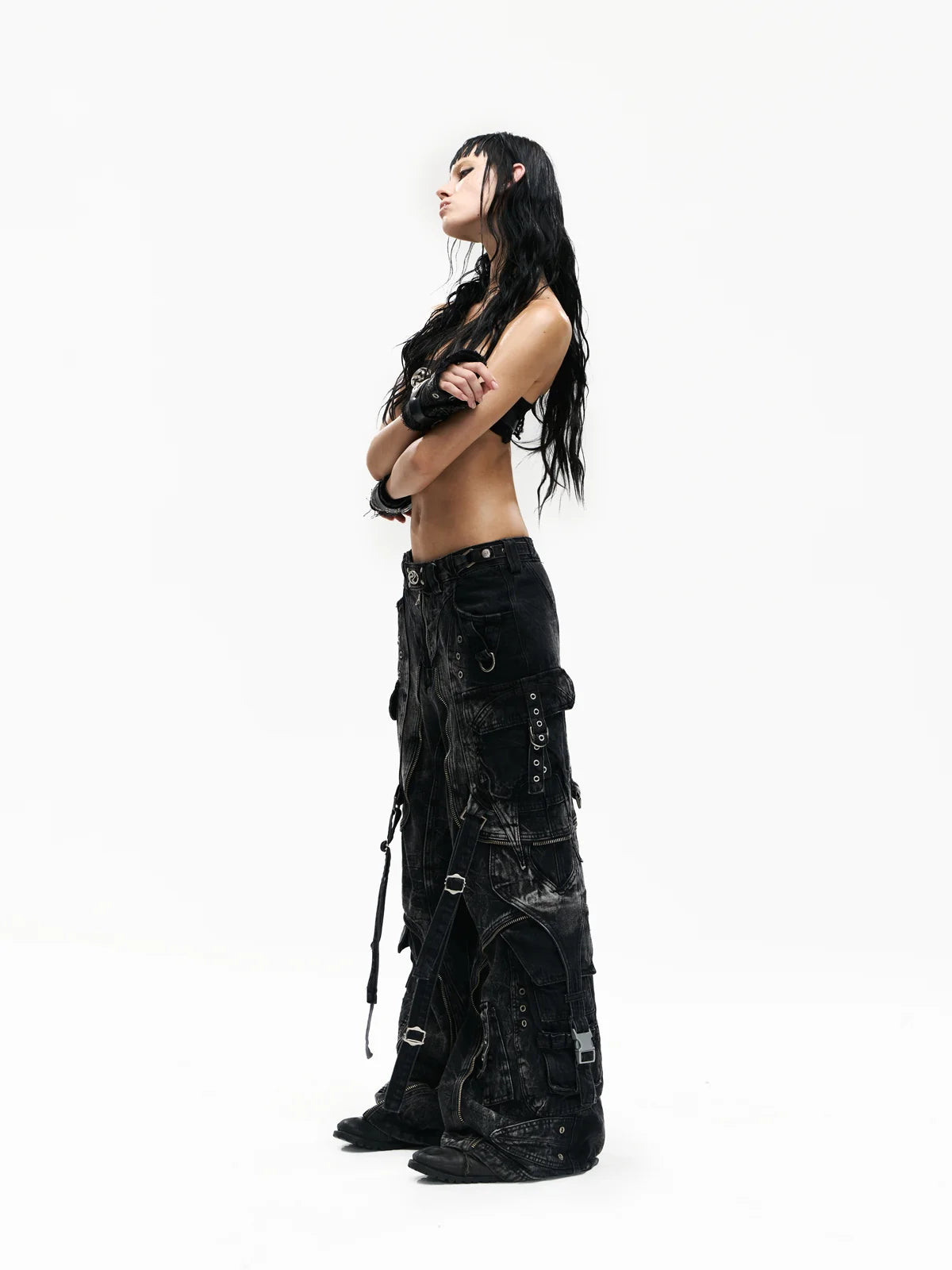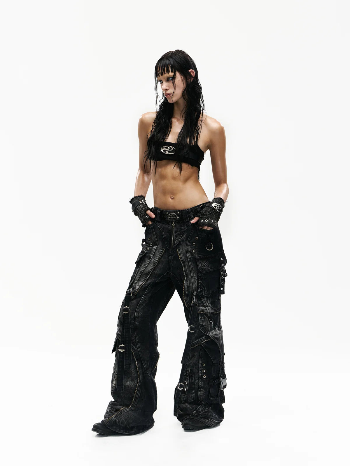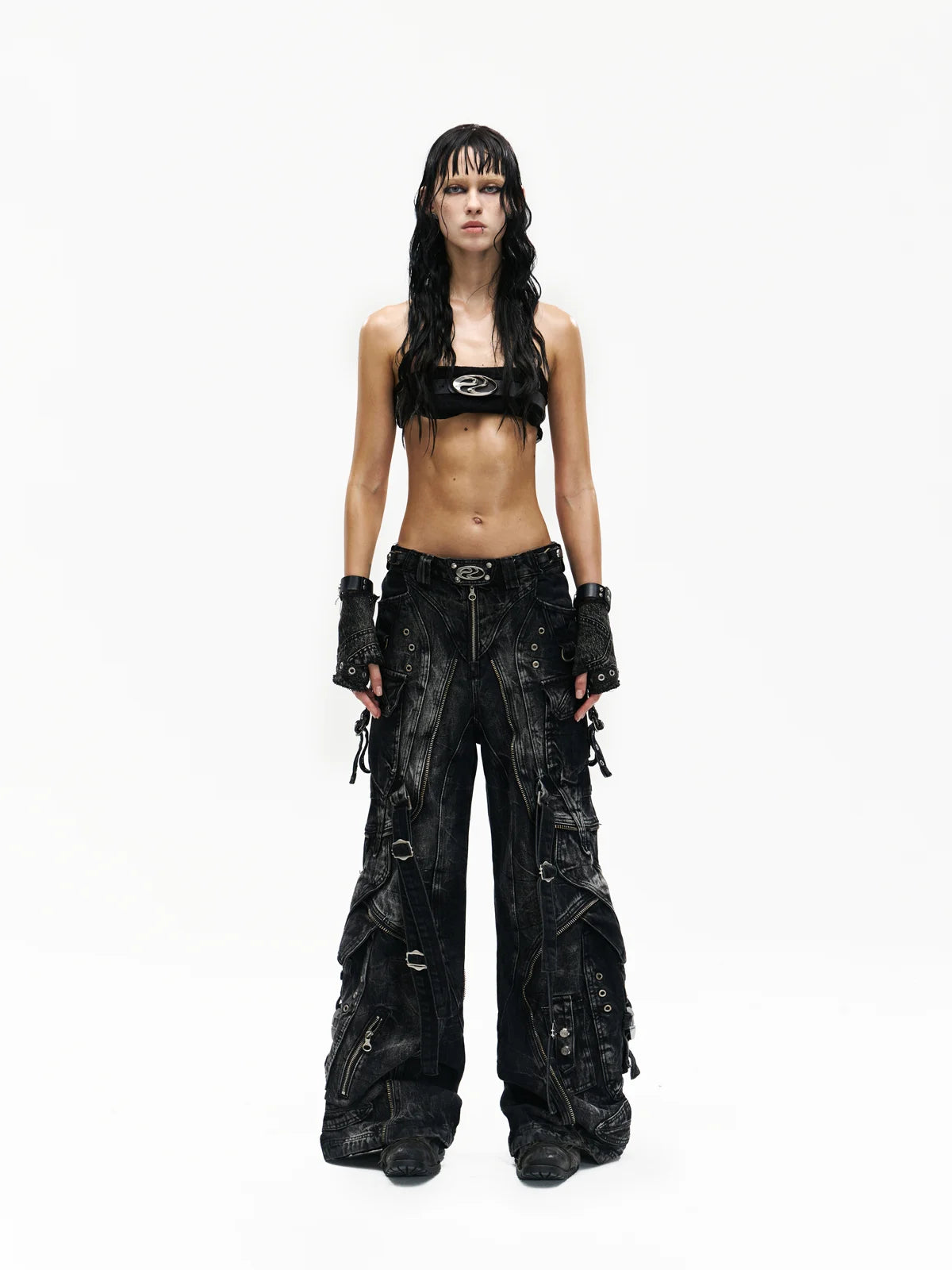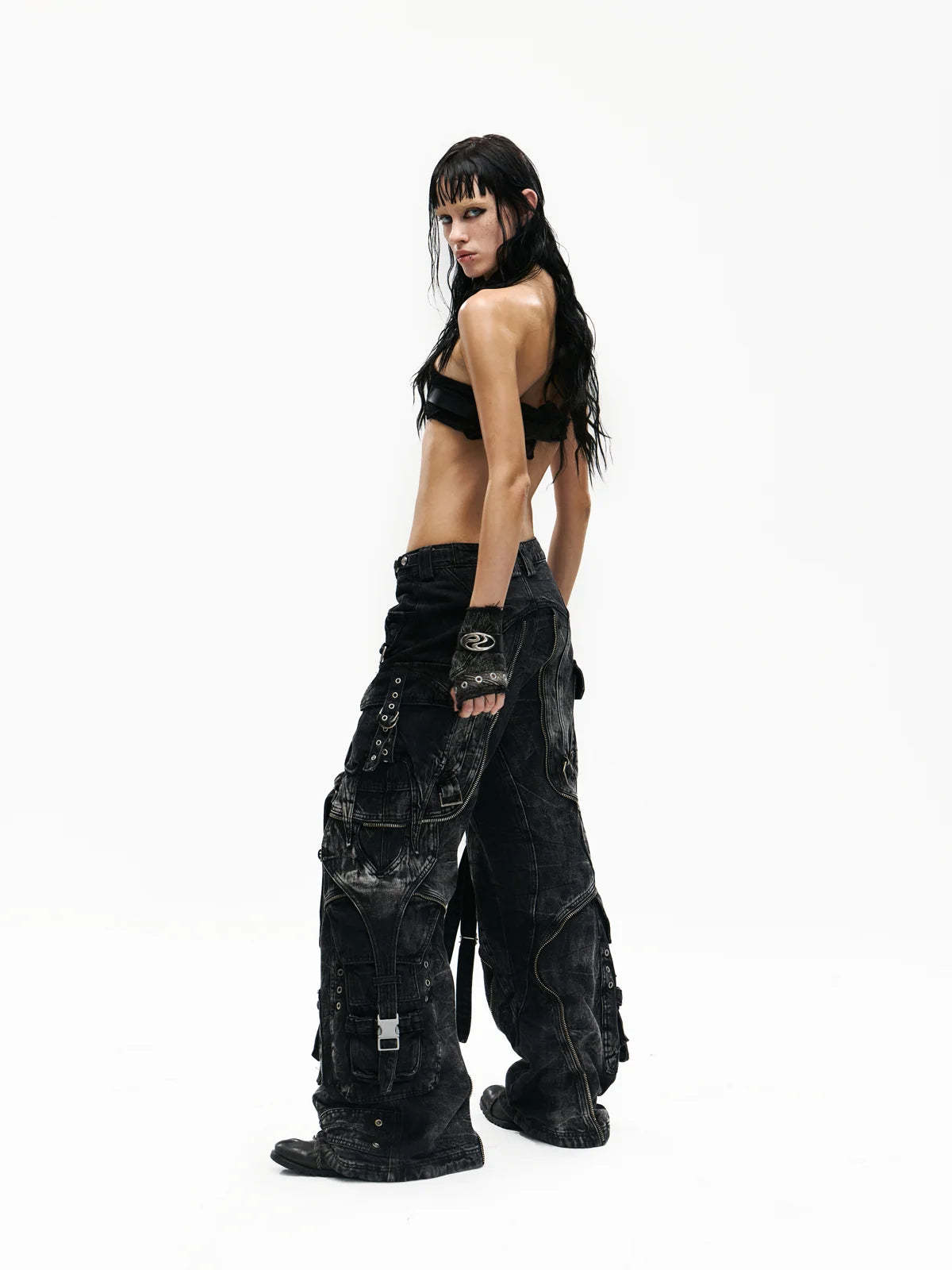 A-Line Baggy Jeans with Hardware Details