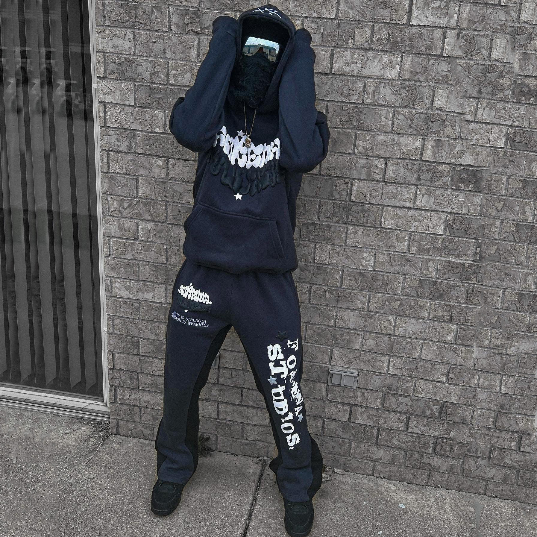 Casual street patchwork printed hoodie and trousers two-piece suit