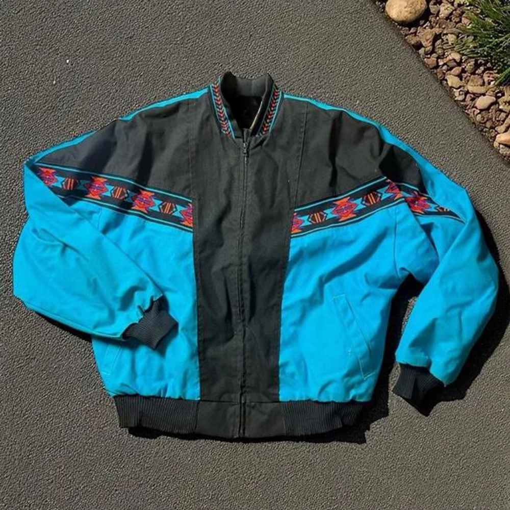 Contrast Color Retro Web Splicing Zipper Jacket