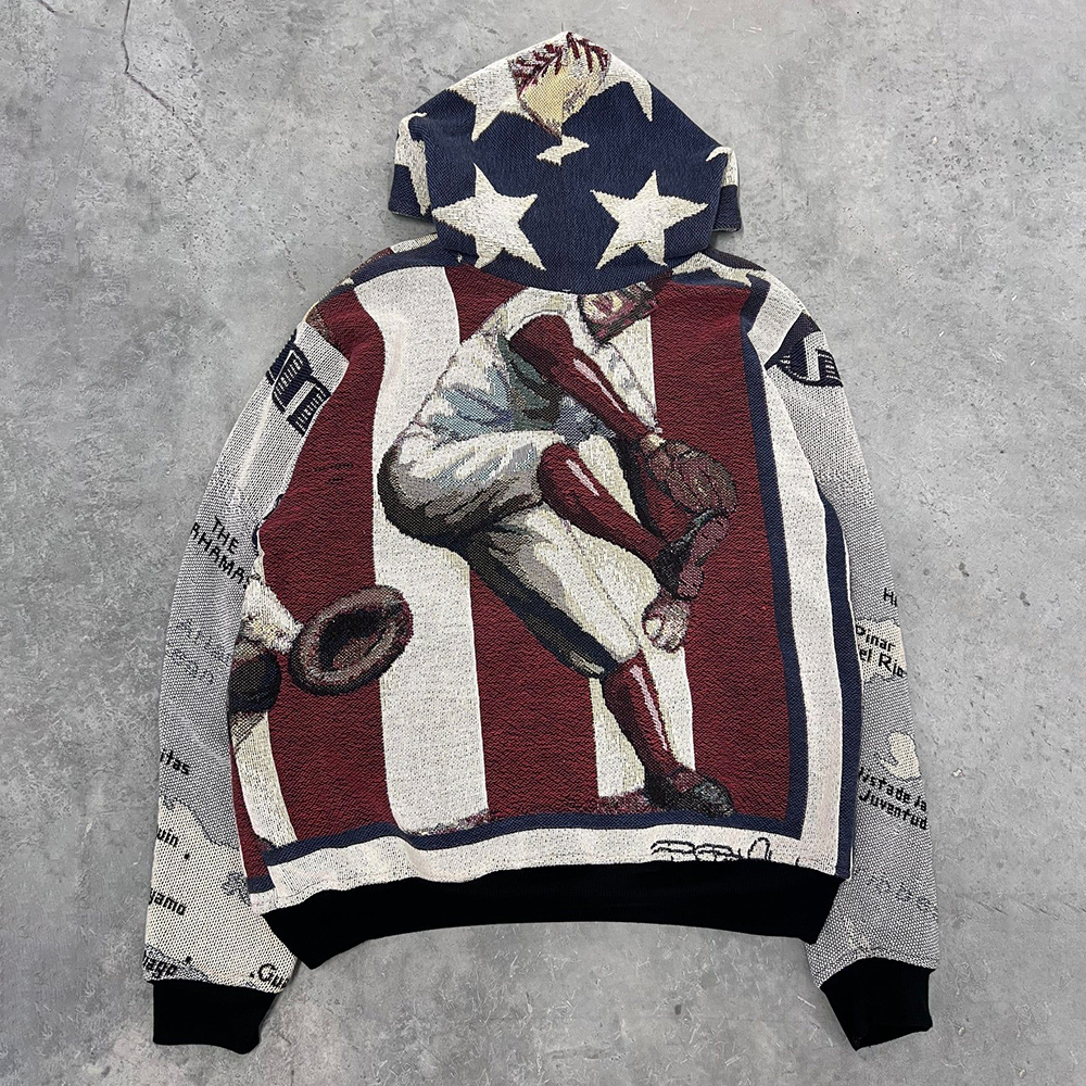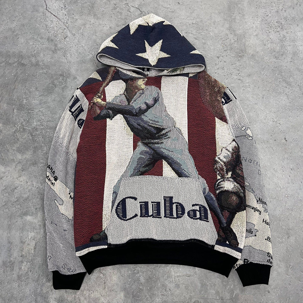 Cuban Slugger Print Long Sleeve Hoodies
