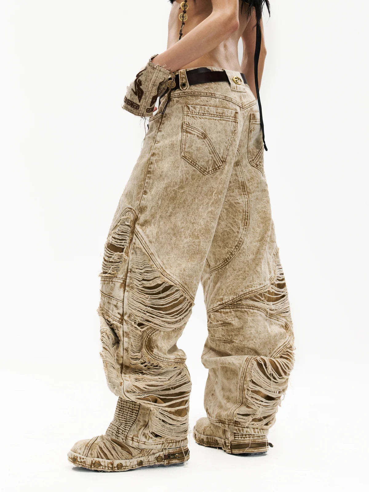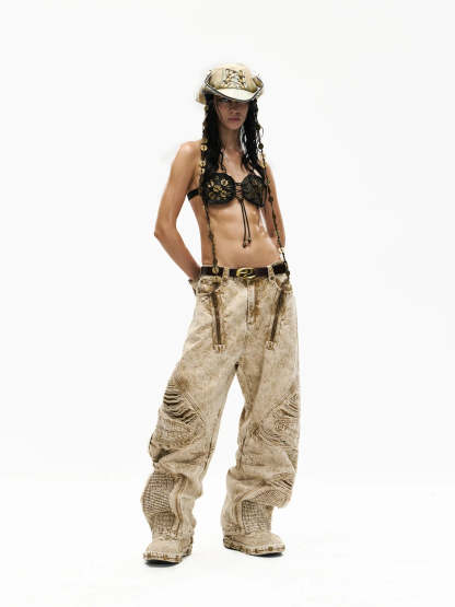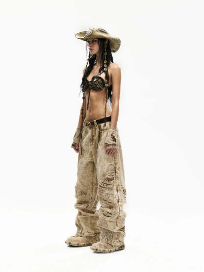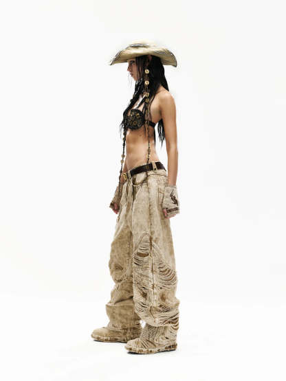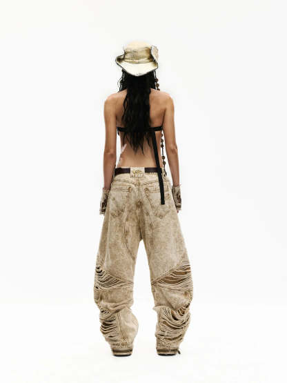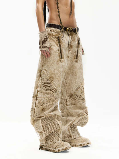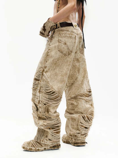 Distroyed Apricot Baggy Jeans