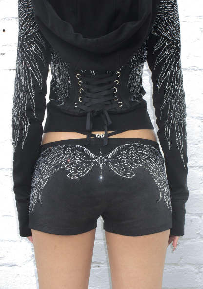 FALLEN RHINESTONE MICRO HOTPANT SHORTS WASHED BLACK