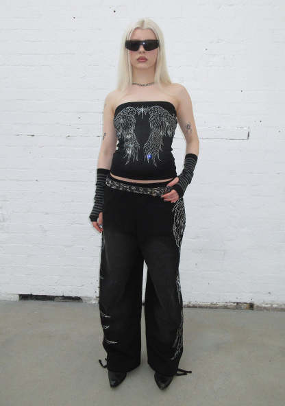 FALLEN RHINESTONE TUBE TOP WASHED BLACK