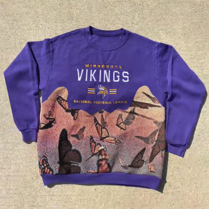 Fashion Vikings Print Spliced Long Sleeve Sweatshirt