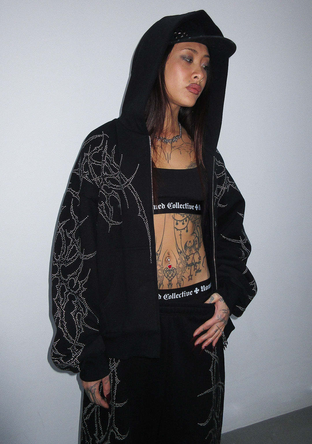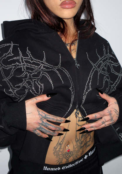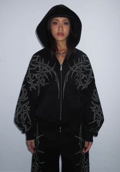 HAUNT STUDDED ZIP HOODIE BLACK