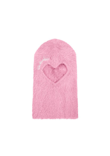 PREY FLUFFY KNIT HEART BALACLAVA BABY PINK