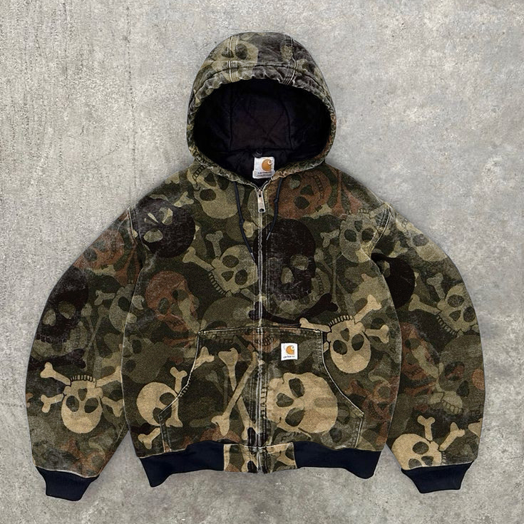 Skull camouflage zip-up thin jacket
