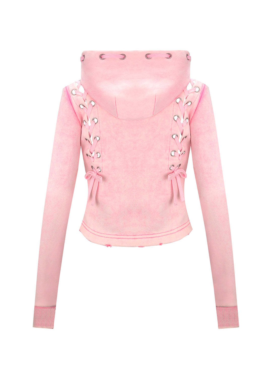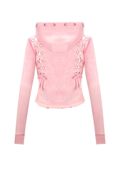 VENDETTA LACE UP FITTED ZIP HOODIE WASHED BABY PINK